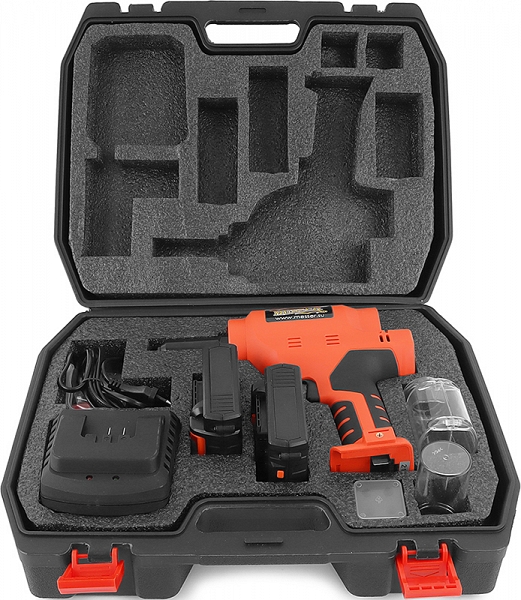 - 2 съемных Li-ion аккумулятора напряжением 18 В, емкостью 2,0 Ач со светодиодной индикацией зарядки