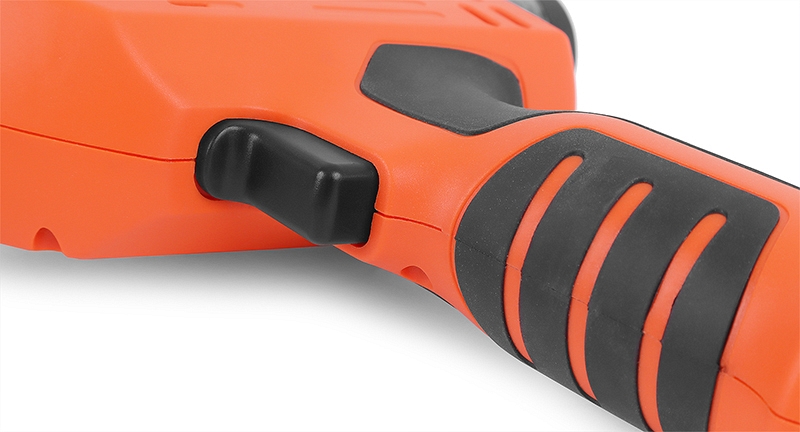 - Электронная защита от перегрузок: в случае нештатной ситуации, например, при заклинивании хвоста вытяжной заклепки внутри инструмента, заклепочник остановит работу и сообщит об ошибке, включив красный светодиодный индикатор на корпусе