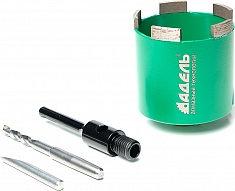 - Возможно использование с центровочным твердосплавным сверлом и различными переходниками (М16 – Шестигранник, М16 – SDS-Plus, М16 – SDS-Max)