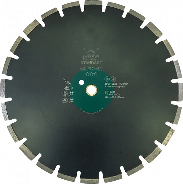 Цена и технические характеристики диска алмазного сегментного по асфальту Keos Standart Asphalt 400 мм: