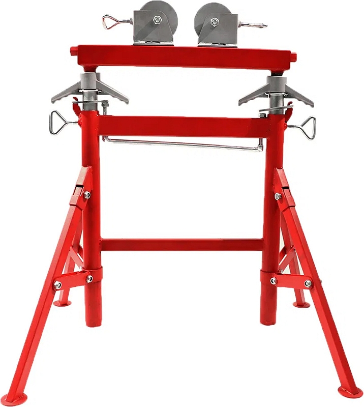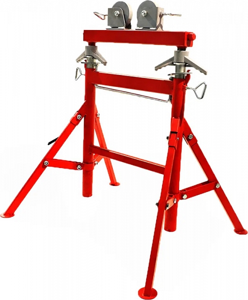 Двойная складная регулируемая роликовая опора для труб Remmers Titan 43 (Реммерс Титан 43) предназначена для работы с трубами Ø до 910 мм (43"). Широко используется при сварке тяжелых, фасонных, твердых и круглых труб; для поддержки труб во время накатывания желобков, нарезания резьбы, резки, снятия фаски, вырезания отверстий и т.д.