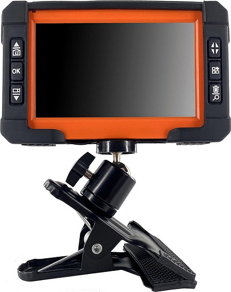 - Монитор, диагональю 5", расширением 800 × 3 (RGB) × 480, имеет разъем USB для подключения источника и слот для карт Micro SD для хранения изображений и видео