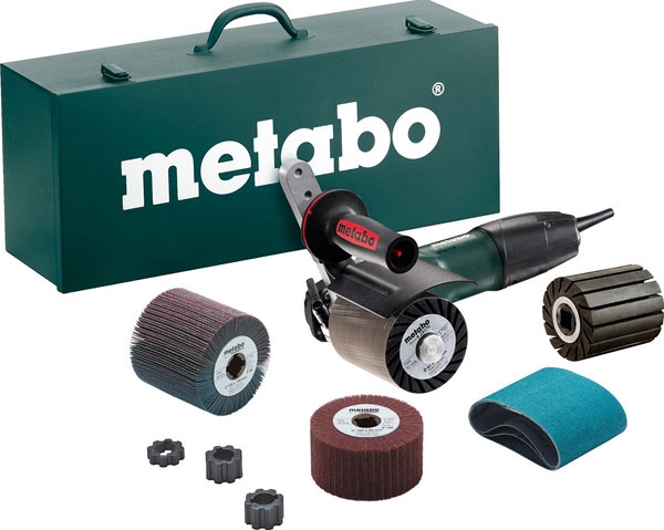 Щеточная шлифмашина Metabo SE 12-115 Set (Метабо СЕ 12-115 СЕТ) высокомоментная сатинирующая машина с двойным понижающим редуктором для шлифовки, сатинирования, крацевания и зеркальной полировки. Используют для создания матового покрытия, а также применяется для шлифования и полировки различных материалов, в первую очередь, металлов. Двигатель Metabo Marathon был разработан специально для интенсивных нагрузок. Шлифмашина универсальная в комплектации полного ассортимента насадок.
