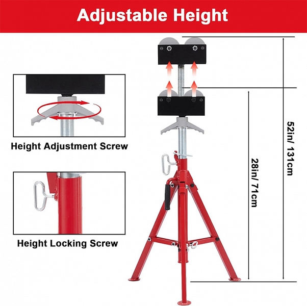 - Регулируемая высота: регулируются по высоте 710 – 1310 мм (28" – 52"), после регулировки высоты стопорная шайба и фиксирующий винт обеспечивают устойчивость