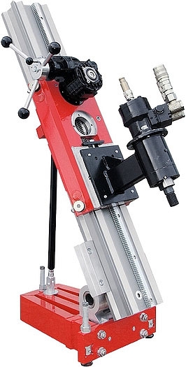 Специальная сверлильная стойка Dr. Schulze B-600 (Доктор Шульце Б-600) – универсальная и особо надежная керносверлильная станина для гидравлических моторов для бурения отвеpстий в бетоне, железобетоне, кирпиче, камне Ø до 600 мм под углом -90° ... +45°. На изображении показана конфигурация со шпинделем В-300, гидравлическим мотором OMR 300 и шарниром (дополнительные опции).