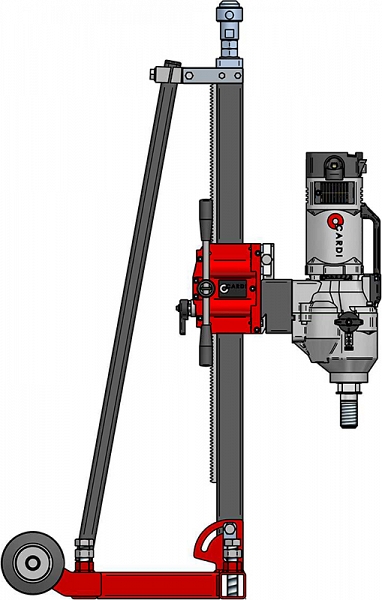 Установка алмазного бурения Cardi 400 (Карди 400) предназначена для сверления отверстий в армированном бетоне, камне, кирпиче и прочих материалах Ø 30 – 400 мм под углом 0° – 75° с подачей воды.